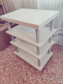 Presenta 4 ripiani 60 x 40 cm, ad alto spessore. Le colonne portanti sono di acciaio filettato da 18 mm, rivestite. L'accoppiamento col pavimento è garantito da 4 dadi ciechi sferici, soluzione che permette la perfetta regolazione di appoggio.