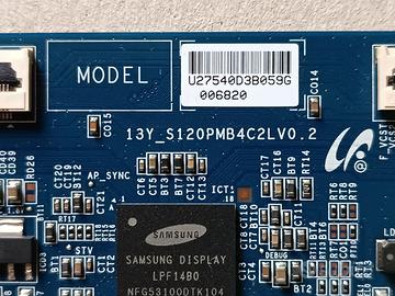 TCon modello 13Y_S120PMB4C2LV0.2 (come da immagini) presa da TV Toshiba 40L7335D perfettamente funzionante. La TV - non di mia proprietà - aveva il pannello (il vetro) rotto (meccanicamente) causa urto.