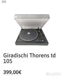 TD 105 è un giradischi a cinghia prodotto dalla Thorens Corporation. Dotato di sistemi di trasmissione servocontrollato elettronico e braccio ISOTRACK TP 22 ed il TD 105 è dotato di spegnimento elettronico senza attrito con rilevamento della velocità e ritorno automatico del braccio.