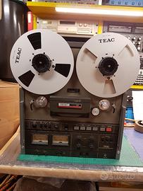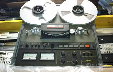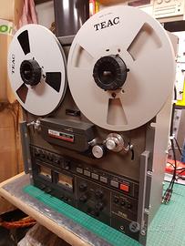 Registratore a bobine Teac Vintage e famosissimo, macchina da studio da 1/4, commutabile in Play/rec su 2 piste e in Play su 4 piste reverse. modificato per montaggio a rack, completamente revisionato e perfettamente funzionante, teste perfette.