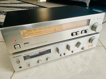 Propongo amplificatore technics su-v3 e radio tuner nad 4020a entrambi in buone condizioni e funzionanti, l amplificatore eroga 40watt per canale con wumeter con tecnologia new class A , di buona fattura e qualità, ottima entrata phono per giradischi con possibilità di collegarci lettore cd , radio , 2 coppie di casse diffusori acustici , equalizzatore, non ha la separazione pre e finale …. il tuner nad di buona costruzione riceve bene le stazioni radio .