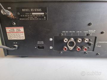 Vendo Technics RS-676US, deck cassette stereo vintage, usato ma in buone condizioni estetiche, completo di tutta la cavettistica inclusa (cavi di collegamento linea, alimentazione, ecc.).