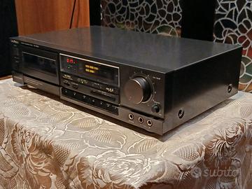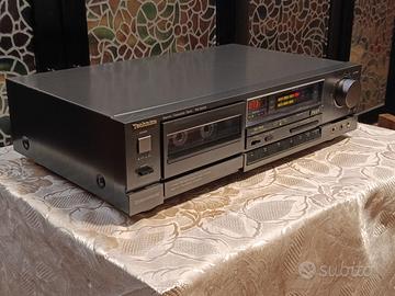 Vendo piastra a cassette stereo tape deck 2 testine HX-Pro Class AA Technics RS-B505 in ottime condizioni, perfettamente funzionante, manuale in formato elettronico .pdf, Hi-Fi vintage anni '80. In caso di spedizione non utilizzo il servizio di tuttosubito. Accetto altro pagamento con video dimostrativo del funzionamento Caratteristiche: -Anno di produzione: 1988 -Frontale: nero con scritte bianche / oro display a led multicolor -Vano cassetta stabilizzato con meccanismo apertura basculante protezione testine -Contagiri e tastiera comando sono completamente digitali (tasti a pressione) -Ingresso frontale per cuffia tramite jack da 3,5mm -Ingressi frontale per microfono tramite jack da 3,5mm -Ingresso - uscita posteriore RCA -Tipo di nastro: riconoscimento automatico cassetta (STD - normale tipo I, CrO2 - biossido di cromo tipo II, Metal tipo IV) -Velocità: 4,8 cm/s -Testine: 2 - 1 (Solid Permalloy Head) x riproduzione / registrazione , 1 (Double-Gap Ferrite Head) x cancellare -Motori: 2 DC motor electonically controlled -Configurazione delle tracce: 4 tracce stereo a 2 canali -Risposta di frequenza: 30 - 15.000Hz +-3db (nastro normale), 30 - 16.000Hz +-3db (nastri CrO2), 20 - 17.000Hz +-3db (nastri Metal) -Rapporto S/N: 56 db (senza dolby), 66 db (con dolby) -Wow & Flutter: 0,06% -Tecnologia Dolby System indicatore visivo e selettore Dolby Nr Off - B - C -Selettore "Counter Reset" -Selettore "Timer" (Rec / Off / Play) -Regolazione volume di intensita del segnale in entrata e bilanciamento tramite apposite manopole -Indicatori Vu-Meter digitali a led per misurare l'intensita del segnale -Dimensioni: L-43cm x H-12.5cm x P-29cm -Peso: 4.3Kg Per informazioni non esitate a contattare Eventuale spedizione in TUTTA ITALIA RS B505 RS B 505 RSB 505 RSB505