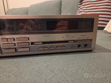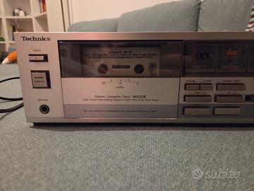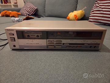 In vendita un bellissimo e iconico Technics RS-M233X, un deck per cassette stereo prodotto nei primi anni '80 (circa 1983). Questo modello si distingue per l'integrazione del sistema di riduzione del rumore dbx, raramente presente sui modelli di fascia media, che permette una gamma dinamica eccezionale e registrazioni quasi prive di fruscio. Il design è il classico "Technics Silver" elegante e robusto, perfetto per completare un impianto hi-fi vintage di qualità. Caratteristiche Principali Riduzione Rumore: Equipaggiato con dbx Type II, oltre ai classici Dolby B e C. Compatibilità Nastri: Selettore per nastri Normal, CrO2 (Chrome) e Metal. Meccanica: Soft-Touch per un controllo fluido delle funzioni Play, Stop e Rec. Indicatori: Display FL (fluorescente) nitido per il monitoraggio dei livelli di picco. Funzioni Extra: One Touch Recording, Rewind Auto Play e Full Auto Stop. Specifiche Tecniche Testine: Testina MX per una durata e fedeltà superiore. Risposta in frequenza: 20Hz - 19kHz (con nastro Metal). Rapporto Segnale/Rumore: Fino a 92dB (con dbx attivo). Wow and Flutter: 0.048% (WRMS).