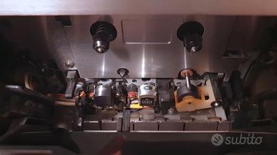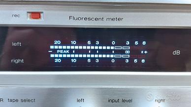 USATO RICONDIZIONATO Frontale anni 70 e tecnologia VFD per gli indicatori di picco. Meccanismo ad azionamento meccanico con tastoni a pianoforte, leve di selezione per DOLBY, BIAS/EQ alto/basso e Metal, LINE INPUT. Manopole attenuatori ingresso separate L + R, VU meter di picco su VFD. Indicatori di REC a LED. Contatore analogico a 3 cifre. Ottima prestazione audio. Deck indicato per principianti della registrazione analogica. L'unità è stata completamente ripulita fino all'ultimo interstizio, notate la lucentezza del frontale, il pinch roller originale pulito a fondo ha ricevuto un trattamento gomma, la testina lucidata e senza segni, gli ingranaggi ed altri punti di rotazione e contatto lubrificati con oli e grassi specifici, i controlli rotativi sbloccati, puliti (elettricamente) e lubrificato l'asse di rotazione. Interventi effettuati: - Pulizia interna, esterna - Pulizia trasporto, slitta testine - Piccole riparazioni meccaniche - Ripristino scorrevolezza sportello - Disossidato switch e potenziometri, ripristino scorrevolezza (tutti) - Pulizia ed ingrassaggio contatore - Disossidato e pulito switch cassetta - Pulito ingressi uscite (tutte) - Lubrificazione cuscinetto capstan - Lubrificazione bronzina anteriore motore - Ingrassaggio cuscinetto posteriore capstan - Ingrassaggio/lubrificazione meccanica posteriore - Ingrassaggio/lubrificazione meccanica anteriore - Ingrassaggio hub con grasso alta velocità - Sostituito cinghia capstan - Sostituito cinghia contatore - Pulizia profonda pinch roller + trattamento gomma - Pulizia accurata testine e percorso nastro - Lucidatura testine R/P - Disossidato PB/REC multiswitch - Aggiustamento azimuth con nuova sigillatura vite - Regolazione velocità - Calibrazione Playback Level 200nWb/m (ANSI, Dolby) - Calibrazione corrente REC (TDK D, +0dB) - Calibrazione corrente BIAS (TDK D, -20dB) Condizioni buone per l'età. Cavo di alimentazione integrato con spina 3 poli.