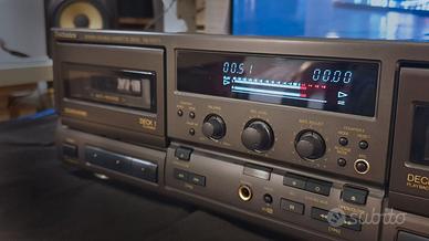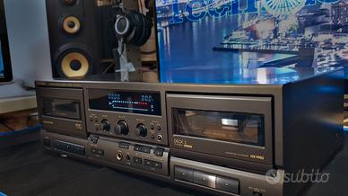 Descrizione: full logic control, completamente motorizzata, controllo remoto completo inclusa apertura/chiusura sportelli con porgicassetta, auto-reverse e tape program sensor (ricerca tracce), ampi contatori in tempo reale (minuti, secondi). La più avanzata tecnologia giapponese al vostro servizio. Dolby B/C e HX Pro, calibratore automatico di registrazione (ATC) con rappres. grafica a 3 punti e BIAS fine aggiustabile dall'utente, selettore automatico tipo di nastro, peak meters in schermo VFD con indicatori di controllo. Macchina stupenda con motori inverter, riavvolgimenti di soli 45sec. per una C-60, basso wow&flutter, dettaglio sonico difficilmente raggiungibile anche da mostri sacri della registrazione. Il vostro costoso negozio di Hi-Fi ha anche completamente disassemblato e ricondizionato i meccanismi? 3 tipi di grasso, 2 tipi di olio, ingranaggi, switch e strumenti per un deck che funziona esattamente come se fosse stato assemblato oggi. Interventi effettuati: - Pulizia interna, esterna - Pulizia trasporto, slitta testine - Disossidato switch e potenziometri (tutti) - Pulizia a disossidazione switch meccanismi - Pulito ingressi uscite (tutte) - Nuovo ingranaggio motore meccanismo - Lubrificazione cuscinetto capstan - Lubrificazione bronzina anteriore motore - Ingrassaggio meccanismo apertura/chiusura - Ingrassaggio cuscinetto posteriore capstan - Ingrassaggio/lubrificazione meccanica posteriore - Ingrassaggio/lubrificazione meccanica anteriore - Pulizia profonda cinghia capstan - Pulizia profonda pinch roller + trattamento gomma - Pulizia accurata testine e percorso nastro - Aggiustamento azimuth (DECK1: FWD, REW; DECK2: FWD, REW) - Regolazione velocità (DECK1: Normal; DECK2: Normal, x2) - Aggiustamento livello Playback 200 nWb/m (DECK1, DECK2) - Calibrazione corrente REC (TDK D, +0dB) - Calibrazione corrente BIAS (TDK D, -20dB) Prossimi interventi suggeriti: nessuno. Estetica in ottime condizioni. Fornito con cavo di alimentazione IEC 60320 C7.