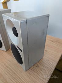 Gli unici 2 difetti estetici sono presenti sul diffusore di destra, ovvero una piccola scrostatura sul frontale e delle strisce scure sul lato destro. A livello sonoro sono perfette. Per la scheda tecnica completa vi invito a consultare i siti specializzati;)