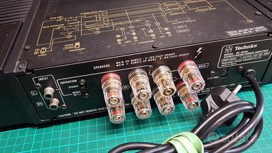 Agli amplificatori è stato fatto upgrade con sostituzione dei terminali di uscita con connettori duali per accettare sia banane che filo spellato di grandi dimensioni.