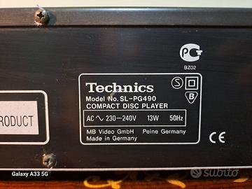 Funziona perfettamente. Technics SL - PG 490 (Compact Disc Player) AC ~ 230-240V 13W 50Hz