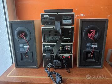 Stereo Technics vintage SE-HD310 amplificatore ST-HD310 Tuner RS-HD310 cassette deck SL-HD310 compact disc player Il telecomando non funziona ed il vano cassette è bloccato. Piccole sbeccature alle casse, chiusura rossa del fermo cavo casse non presente ad entrambe le casse. Amplificatore, compact disc, Tuner e casse funzionanti. Ceduto così com'è as is. Le foto sono parte integrante della descrizione. Spedisco con un mio corriere al costo di 20€. Due imballi.