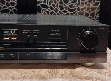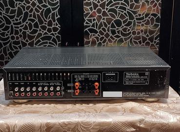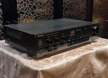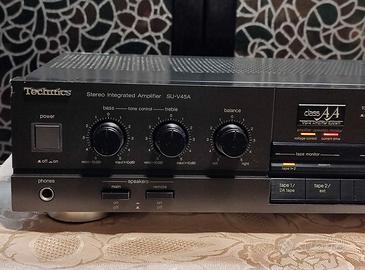 Vendo amplificatore stereo integrato in classe AA Technics SU-V45A possibilita di collegare 4 diffusori (2+2), ottime condizioni e perfettamente funzionante, manuali in pdf, Hi-Fi vintage anni '80 In caso di spedizione non utilizzo il servizio di tuttosubito. Accetto altro pagamento con video dimostrativo del funzionamento Caratteristiche: -Anno di produzione: 1988 -Frontale nero fumè con scritte bianco/oro -Tipo:VC-4 Amplifier System Class AA - Minimal Distorsion - Superior Dynamic Range -Potenza nominale: 200W -Potenza canale: 45W min.in RMS su 8 ohm -Risposta in Frequenza: 5Hz - 120kHz -Distorsione Armonica Totale: 0.003% -Ingressi RCA: Phono, Tuner, Cd, Tape 1/2 Play, -Uscite RCA: Tape 1/2 Rec -Jack per cuffie da 3,5mm -Impedenza speaker da 4 a 16 Ohm. -Tasti selezione Speakers Controls: Main (A), Remote (B), (A) + (B), poi off (output) tramite jack da 3,5mm per cuffie -Tasto selezione "Tone control": (include/esclude i controlli degli alti e dei bassi) -Tasto selezione "Loudness" (50Hz + 9dB) -Tasto selezione "Cd Direct": (ascolto diretto della sorgente cd) -Tasti selezione Sorgente Audio : Tape 1/DAT, Tape 2/ext, Aux, Cd, Tuner, Phono -Controlli per bassi (50Hz +- 10dB), alti (20kHz +- 10dB), balance -Alimentazione a corrente alternata (CA) / 220 Volt, -Dimensioni: L-43cm x H-10.4cm x P-29cm -Peso: 6.7Kg Per informazioni non esitate a contattare Eventuale spedizione in TUTTA ITALIA SUV45A SUV 45A SU V 45A SU V45A SU V 45 A SU-V45A SU V45 A str