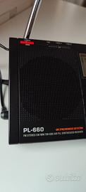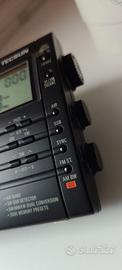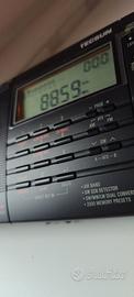 Ricevitore portatile per le gamme LW (100/519 KHz), MW (520/1710 KHz), SW (1,7/30 MHz), FM (88/108 MHz) ed AIR (118/137 MHz). Possibilità di ascolto in SSB sulla gamma delle onde corte con BFO dedicato, antenna telescopica per SW, FM ed AIR, antenna in ferrita direzionabile per MW, presa per antenna FM e SW esterna. Controlli di Sintonia, Volume, BFO, tastiera per la immissione diretta della frequenza, 2000 memorie con scansione automatica, funzione sveglia con timer e doppio allarme, tasto di blocco, selettori di tono e di guadagno di antenna. Prese per cuffie stereo, ampio display retroilluminato, altoparlante frontale. Alimentazione tramite 4 pile a stilo AA oppure a 6V/DC tramite adattatore da rete in dotazione. Fornita con auricolari, antenna a filo e custodia. Dimensioni 187 x 114 x 33 mm.