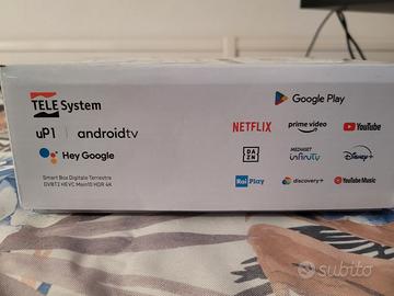 Vendo decoder TELE System UP1 Decoder Digitale Terrestre Android TV 4K Ultra HD, Certificato Netflix, Prime Video, Disney+, Chromecast Built-in, DVB-T2 HEVC, HDR10+ HLG, AV1, HDMI/SCART.