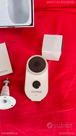 Smart IP Camera wifi con batteria Ultivon. Completa di stand regolabile per essere appesa e cavo USB per la ricarica della batteria, che con una carica dura moltissimi mesi.