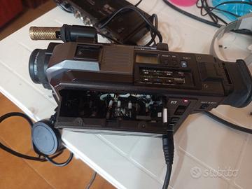 Telecamera Blaupunkt con sistema video 8. La telecamera si accende però non trascina il nastro se si mette in play "mangia " il nastro e va in blocco. Potrebbe essere un problema di cinghie o altro non saprei. Le batterie non funzionano non prendono più la carica. Ha il suo alimentatore ha le istruzioni e la sua valigia in plastica per essere trasportata. Non ho videocassette. Anche se da riparare inizia ad essere un pezzo raro. La vendo nello stato in cui si trova come da riparare.