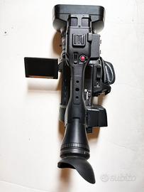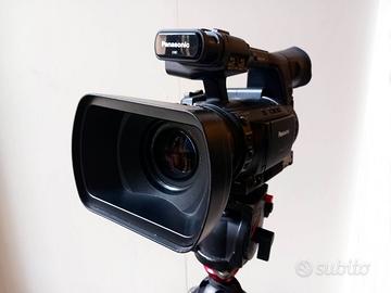 Telecamera professionale Panasonic HPX 250 EJ, come nuova, solo 243 ore d'impiego; 3 sensori ULT (Ultra Luminance Technology); ottica zoom 22x; doppio ingresso audio bilanciato; qualità immagine Broadcast P2 HD con registrazione AVC Intra Codec; filtro ND interno a 4 posizioni; completa di 3 batterie, carcabatterie e alimentatore di rete (non originali); Disponibili a parte 2 schede P2 64Gb e borsa Kata