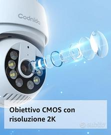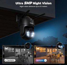 Risoluzione 5MP & Visione Notturna a Colori HD: la telecamera wi-fi esterno ha una risoluzione di 5 megapixel, garantendo immagini ad alta definizione. Inoltre, hai la possibilità di attivare la visione notturna a colori, la visione notturna intelligente e la visione notturna in bianco e nero, permettendoti di vedere cosa succede al buio con una qualità dell'immagine superiore anche in condizioni di scarsa illuminazione.