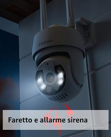 Audio Bidirezionale & Allarme Sonoro e Luminoso:La telecamere da esterno ha un interfono bidirezionale integrato che consente conversazioni tramite applicazione mobile. È possibile parlare con visitatori o familiari e utilizzare il microfono per allontanare gli intrusi sospetti. Inoltre, la funzione di allarme sonoro e luminoso può essere impostata tramite l'applicazione. In caso di rilevamento di un intruso sospetto, la telecamera esterno emetterà suoni e luci per scacciarlo.