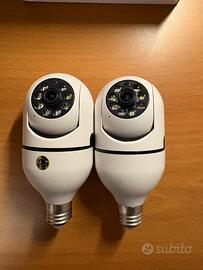 2 Telecamere di sorveglianza wifi con attacco e27 come le normali lampadine, 2 sd card da 64gb per l'archiviazione dei filmati, 2 supporti per l'installazione
