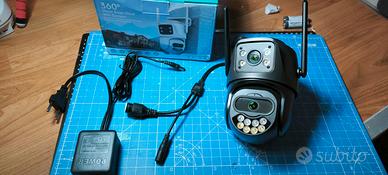 Vendo telecamera esterna WiFi con doppia telecamera 10MP una fissa e una con movimento motorizzato che segue il soggetto inquadrato. Perfettamente funzionante, acquistata ma sostituita dopo poco, per avere tutte le telecamere con unica applicazione. applicazione con doppio schermo per le due telecamere, rilevazione del movimento, riconoscimento soggetto e inseguimento con la telecamera rotante, microfono e segnalatori luminosi. Venduta nella sua scatola originale con il suo alimentatore ed il cavo di collegamento alla rete se non collegato al wi-fi.