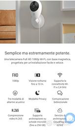 Meravigliosa Telecamera Ezviz con risoluzione full-hd,configurabile in pochi minuti,funzione allarme con un semplice clic utilizzabile quando si esce di casa o ufficio, modalità privacy, possibilità di comunicazioni in tempo reale,facile installazione con adesivi e calamite senza dover fare fori, utilizzabile anche a testa in giù capovolgendo immagine,supporta microSD fino a 256 gb
