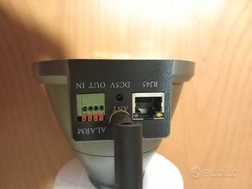 Telecamera IP motorizzata Wi-fi collegabile a rete di casa può visualizzare l'ambiente circostante sia da computer che da applicazione per Android o iOS (9527 wi-fi camera). Movimento di 360° in orizzontale e 90° in verticale. Grazie a luci infrarosso visualizza anche al buio. Funziona solo con alimentatore fornito a corredo da 5V. Telecamera dotata di ingressi e uscite allarme configurabili col movimento dell'immagine. Può registrate immagini su hard disk di rete. Molteplici configurazioni effettuabili da PC con installazione software da CD a corredo. Posso spedire o raggiungere.