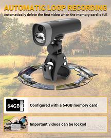 【Standby Prolungato da 2600 mAh】Con una batteria da 2600mAh, offre fino a 4 ore di registrazione continua. La scheda TF da 64GB inclusa offre ampio spazio e, con la registrazione in loop automatico, non rimarrai mai senza spazio di archiviazione: sovrascrive automaticamente i vecchi filmati proteggendo i file bloccati. Viaggia con la certezza di catturare ogni momento senza ricariche frequenti o gestione manuale.