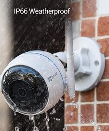EZVIZ CTQ3W - Telecamera di sorveglianza WiFi esterna, con allarme sirena e flash, 30 m di visione notturna, IP66 impermeabile, audio bidirezionale, rilevamento del movimento. App EZVIZ