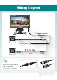 Telecamera posteriore*2 con schermo 7 pollici,assistenza al parcheggio, telecamera posteriore a 18 LED,visione notturna,IP68,per SUV, camion, camper, DC 12-24 V,Cavo 10 m+15 m