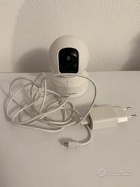 Monitor di sicurezza per interni ad alta definizione, video di sorveglianza panoramica a 360°, visione notturna, chiamate bidirezionali, archiviazione cloud, autoadesivo, controllo tramite applicazione, risoluzione 1296p, luce LED