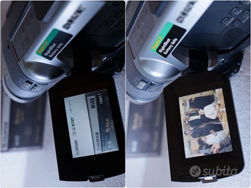 Sony Handycam DCR-TRV145E PAL perfettamente funzionante Questo camcorder Digital8 Sony Handycam DCR-TRV145E PAL è in condizioni di funzionamento ottimali, sia per la ripresa che per la riproduzione. Le testine sono pulite, il vano cassette si apre e chiude agevolmente e la batteria mantiene una carica soddisfacente. Il display a colori e il mirino elettronico in BN sono perfettamente funzionanti. La telecamera è stata recentemente usata per visionare e riversare alcune cassette e un breve test ha confermato che funziona perfettamente anche in ripresa. Segnalo che il coperchietto delle uscite dei cavi ( AV / S-Video / FireWire ) è usurato e non si chiude bene. Inoltre, la fascia dell’impugnatura ha uno strato plastificato con il logo Sony che si è sbriciolato. Come si può vedere nelle foto si tratta solo di inestetismi dovuti alla normale usura e al tempo, che non compromettono in alcun modo il corretto funzionamento. Digitando su Google “SONY HANDYCAM DCR-TRV145E PAL pdf”, si può facilmente trovare il manuale pdf in italiano da scaricare. Nell’offerta, oltre alla videocamera, sono compresi: Batteria Alimentatore / caricabatterie Tracolla Sony 2 cassette Hi8 parzialmente registrate, utili per i test Una borsa FIAB Reporter