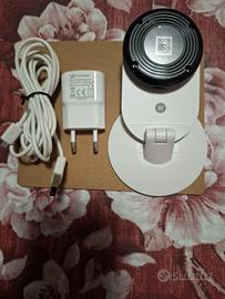 Telecamera YI HD con intelligenza Artificiale; completa di alimentatore e cavo originali; slot micro-Sd per registrazioni; funziona tramite app.