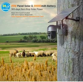 Telecamera videosorveglianza 3g/4g con sim comprensiva di pannello solare. Non necessita di corrente. Batteria tampone, funziona anche in assenza di sole/corrente.