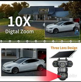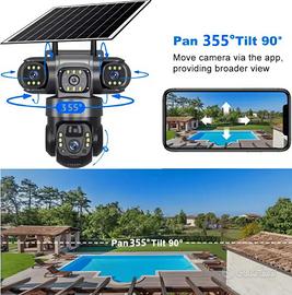 telecamera per videosorveglianza con quattro obiettivi e con alimentazione solare, registrazione anche su sd card, compatibile con tutti i cellulari, intelligenza artificiale per il riconoscimento umano, segue la persona in movimento. Oggetto nuovo nella sua confezione originale, consegna a mano o spedizione dopo pagamento