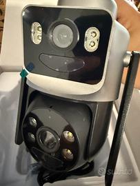 Telecamera di sorveglianza WiFi esterna a doppio obiettivo 8MP con pannello solare. Mai utilizzata in scatola ancora imballata
