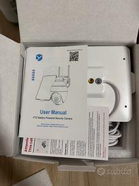 Telecamera Wi-Fi Esterno Senza Fili Con Pannello Solare, 360° PTZ Videocamera Sorveglianza A Batteria, Visione Notturna A Colori, Rilevamento Umano/PIR con Allarme, 2 Vie Audio, 2.4GHz, IP66
