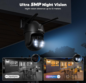 Risoluzione 5MP & Visione Notturna a Colori HD: la telecamera wi-fi esterno ha una risoluzione di 5 megapixel, garantendo immagini ad alta definizione. Inoltre, hai la possibilità di attivare la visione notturna a colori, la visione notturna intelligente e la visione notturna in bianco e nero, permettendoti di vedere cosa succede al buio con una qualità dell'immagine superiore anche in condizioni di scarsa illuminazione.