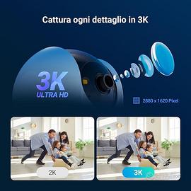 【Risoluzione 3K e Visuale Panoramica 360°】EZVIZ La telecamera WiFi C6N G1 3K cattura ogni dettaglio in alta risoluzione 3K, riduce efficacemente la sovraesposizione e fornisce immagini a colori anche in condizioni di scarsa illuminazione. La C6N G1 riprogettata è concepita per vedere molto di più rispetto alla maggior parte delle telecamere sul mercato, con un'angolazione di 350° Pan e 85° Tilt.
