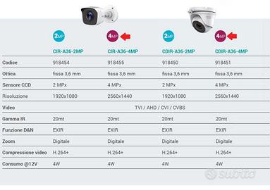 N°4 = Telecamere Fracarro tipo Dome - CDIR-A36-4MP - codice 918451 ottica 3,6mm, Risoluzione 2560x1440, 4MPx. Maggiori Info Tecniche e Caratteristiche in foto Nuove mai montate, mai usate, in confezione originale. Vendo € 20,00 cadauno, Tutte € 80,00