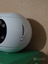 2 telecamere di sorveglianza wifi Le telecamere si possono usare o con la base o avvitate al posto di una lampadina. Applicazione per il monitoraggio a distanza, ingresso per micro SD, ascolto ambientale. Attacco lampadina E27.
