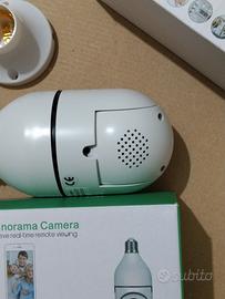 2 telecamere di sorveglianza wifi Le telecamere si possono usare o con la base o avvitate al posto di una lampadina. Applicazione per il monitoraggio a distanza, ingresso per micro SD, ascolto ambientale. Attacco lampadina E27.