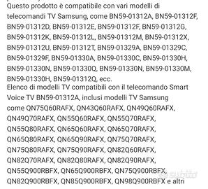 Telecomando Smart TV Samsung con comando vocale. Compatibile, non originale, non bluetooth ma infrarossi