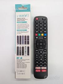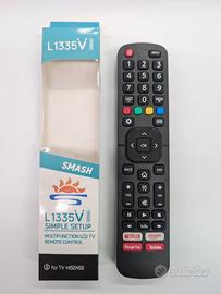 Telecomando universale multifunzione modello L1335V, di marca SMASH, perfettamente compatibile con numerosi modelli di TV Hisense.