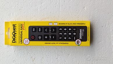 Vendo telecomando universale DIGIQUEST Universal Easy Plus, perfetto per qualsiasi televisore. Il telecomando è come nuovo, usato solo per prova.