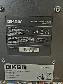 LCD TV-K22 marca DIKOM 22" pollici, formato 16:9 con telecomando incluso, necessita di decoder.