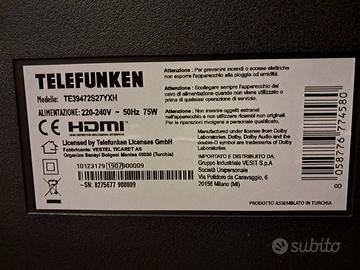 Vendo tv telefunken 39 pollici, funzionante, vedi foto. Dorato di tecnologia full HD con risoluzione 1920 x 1080 pixel. Ritiro a mano zona Prato.