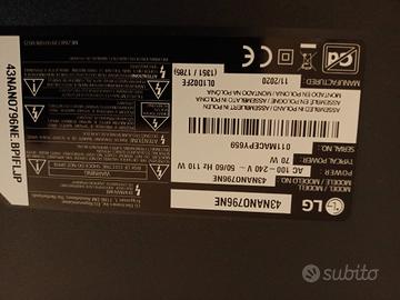 TV LG 43" NanoCell, in perfette condizioni. Nano Color Quad Core Processor 4K Smart TV webOS 6.0 con telecomando puntatore Google Assistant e Alexa integrati, compatibile Apple Airplay 2 e HomeKit