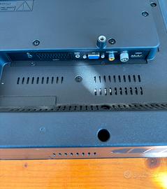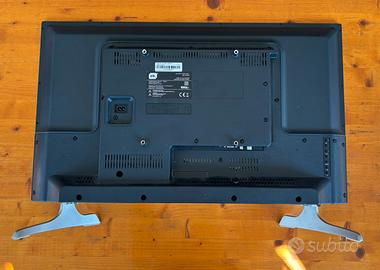 TV LED da 32 pollici con risoluzione Full HD. Risoluzione: Full HD (\(1920\times 1080\) pixel). Connettività: Include 2 porte HDMI e 1 porta USB. Audio: Potenza in uscita RMS di 16 W con Dolby Digital Plus. Caratteristiche: Include piedini di supporto in metallo e pulsanti fisici laterali per il controllo del volume e dei canali.