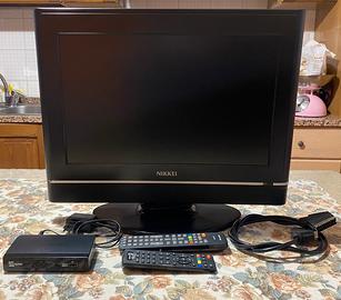 Televisione con decoder,presa scart e telecomandi. Ottima per uso quotidiano. Leggermente rotto il coperchietto del telecomandino del decoder.