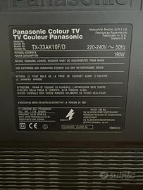 TV Panasonic vintage TX-33AK10F/D 33 pollici perfettamente funzionante, ottima qualità, con telecomando. Peso kg. 68 Non spedisco. solo ritiro a mano senza imballo